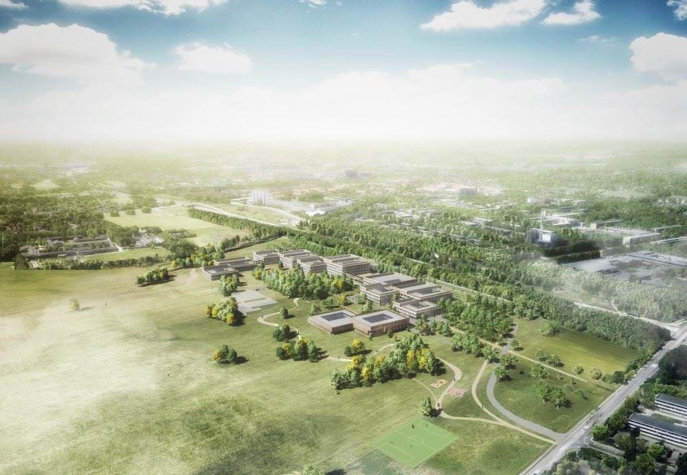 Novozymes opfører grøn innovationscampus med et læringscenter for besøgende og natursti i området. 1. etape af byggeriet forventes at stå færdigt i 2. kvartal af 2019. Området er åbent for offentligheden. Illustration af Vilhelm Lauritzen Arkitekter A/S.